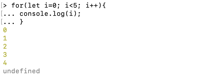 REPL 모드로 node.js를 실행하고 싶다면 'node'만 쳐주면 됨. 나갈땐 '. exit'