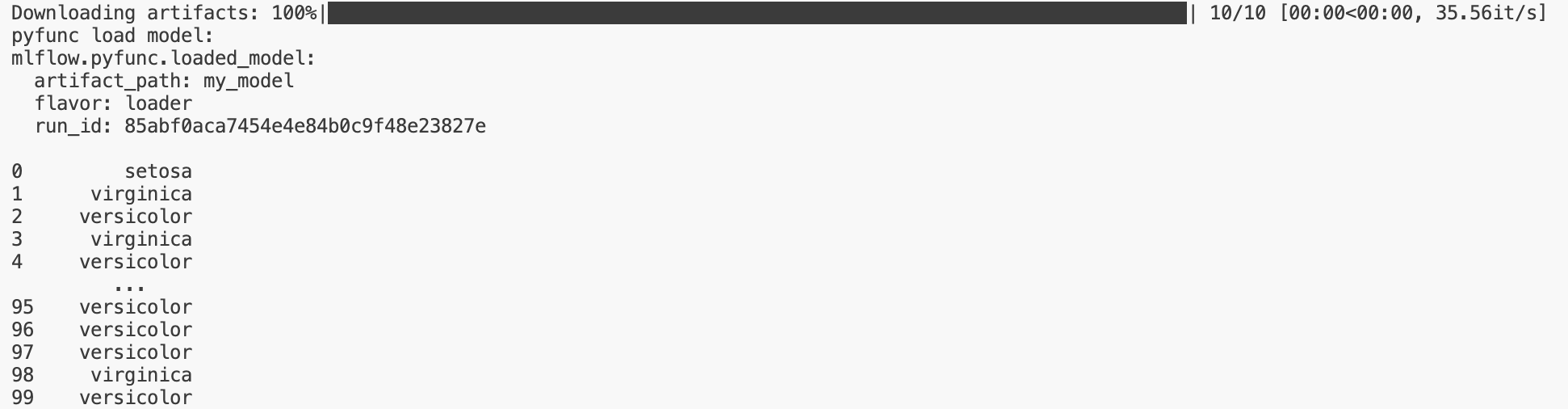 $ python3 load_model.py --run-id 85abf0aca7454e4e84b0c9f48e23827e