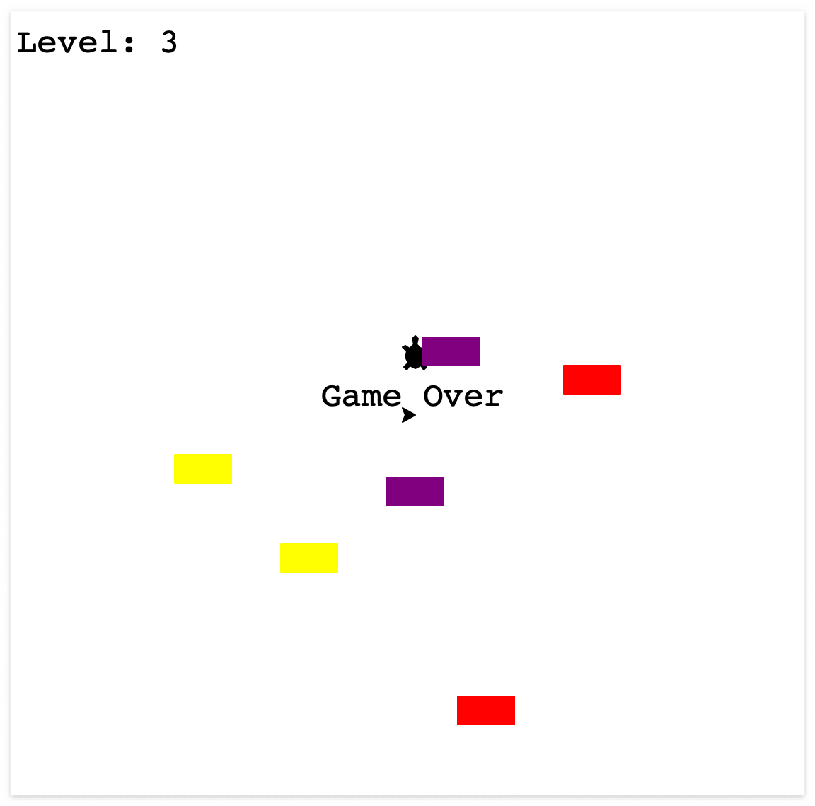 거북이가 모든 장애물을 다 피해서 결승점인 화면 최상단에 도달할 경우, 거북이는 한 단계를 성공한 셈이다.