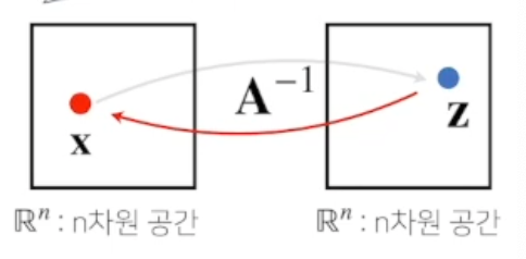 행렬 A와 벡터 X사이의 곱의 결과로 Z를 산출 : m차원 공간의 X 벡터를 n차원 공간의 Z 벡터로 맵핑할 수 있다.