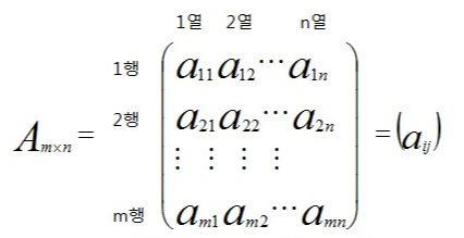 행렬은 대문자 볼드체로 (A) 표시하기도, 소문자 행렬을 함께 나타내어 표시하기도(aij) 한다.