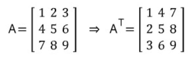 전치행렬이란 행과 열의 인덱스가 바뀐 행렬이다. Xij 가 Xji가 되는 것.