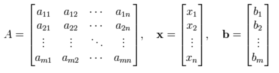 아래 수식에서 Ax = b라는 연립방정식을 확인할 수 있다.