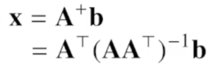 위의 연립방정식에서 만약 n <= m일 경우, 무어펜로즈 역행렬을 활용해 아래와 같이 해를 구하는 것이 가능하다.