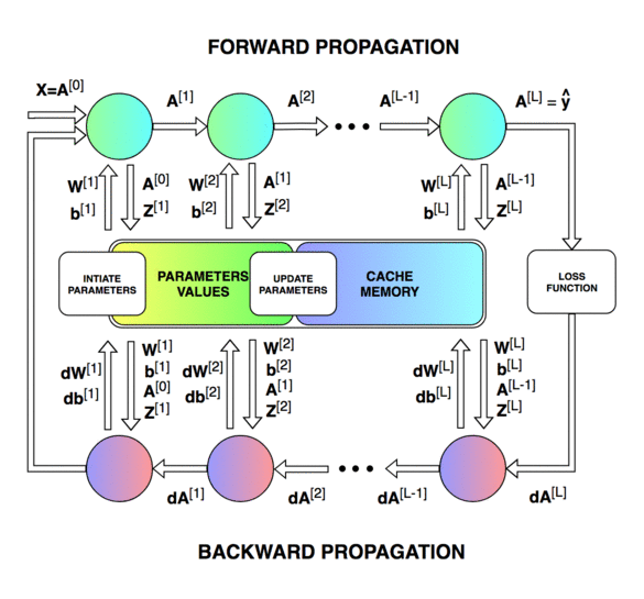 아래는 l개의 순차적인 신경망을 계산하며, Forward propagation 순전파 를 나타낸다.