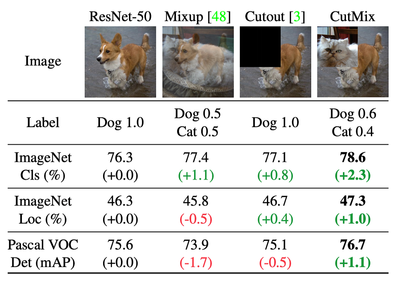 Mixup이란 이미지 자체를 섞어서 모호하게 블렌딩하는 것, Cutmix는 서로 일부를 떼어 그림을 조합하는 것.