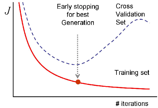 학습을 멈출때에 validation 에러를 이용해서, training에 포함되지 않은 valid 데이터의 loss가 커지기 시작하는 시점에 학습을 멈추는 원리이다.